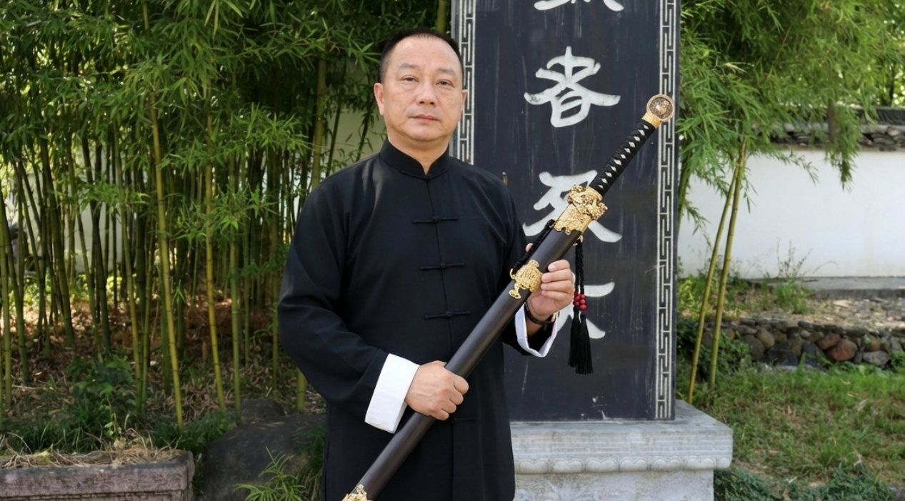刀身的锻造工艺凝聚了传统匠心的精髓。以“龙泉宝刀”方章铭刻,彰显其传承自龙泉铸剑技艺的正统血脉。刀身选用传统百炼钢为材,经古法手工反复锻打,去除杂质,使钢材密度均匀、韧性十足。刃口采用覆土烧刃工艺,通过在刀身敷土后淬火,形成刃口坚硬、刀身柔韧的复合结构,既保证了锋利度,又增强了抗冲击能力。后续历经二十四道手工精细研磨,刀身光洁如镜,刃口锋利异常。经实测,这把战刀能够斩断6毫米钢筋,其性能表现与龙泉宝剑厂的镇宅巨作“大龙泉剑”实战威力相当,足见其在锻造工艺与实战性能上的可靠水准。