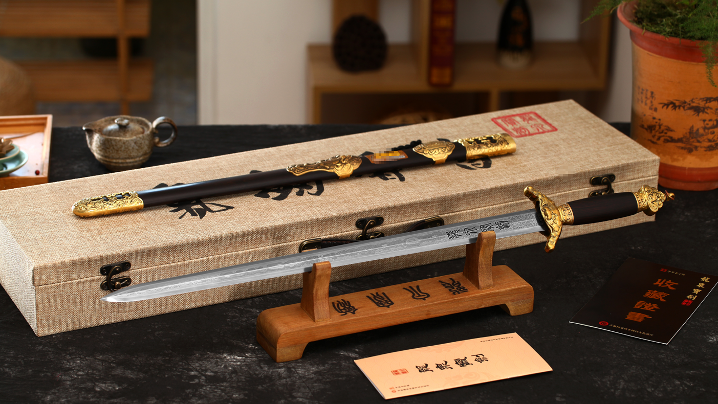 静置于书房或茶室,它瞬间提升了整个空间的格调,彰显主人的不凡品味与文化底蕴。闲暇时,缓缓出鞘,指尖抚过千锤百炼的花纹钢剑身,感受那份独有的“金石之声”与厚重质感,这是一种与历史对话的乐趣。它不是冰冷的摆件,而是可以“把玩”的活物,随着岁月流逝,黄铜包浆会愈发温润,黑檀木光泽会愈加深沉,这份“养”的乐趣,正是文玩收藏的魅力所在。同时,出自名门、工艺考究的龙泉宝剑,本身就具备相当的收藏与升值空间。