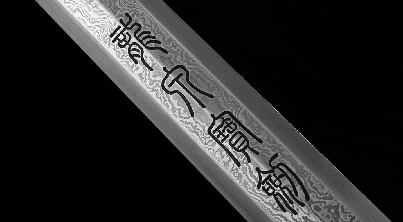 ·剑身·百炼花纹钢:剑身经过精细研磨,呈现出水波或云朵状的天然花纹。在光线下转动,花纹流转,深邃而迷人。这既是钢材性能的保证,也是具有观赏性的艺术点缀。