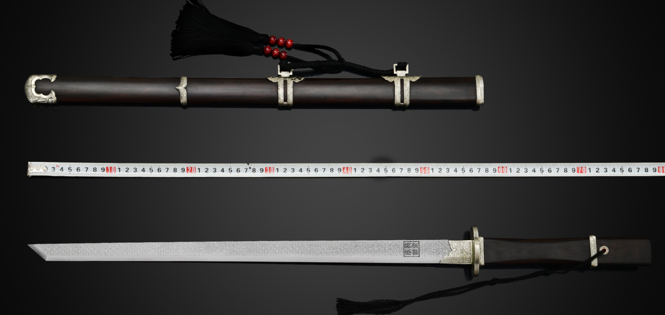 总而言之,这柄方柄龙鳞纹白铜唐横刀,是龙泉宝剑厂结合历史参考与传统工艺的一件作品。它运用了百炼花纹钢技术,搭配白铜与黑檀木,展现了龙泉刀剑制作的特点。对于喜爱唐刀和传统工艺的朋友来说,这是一件值得了解和品鉴的龙泉刀剑作品。