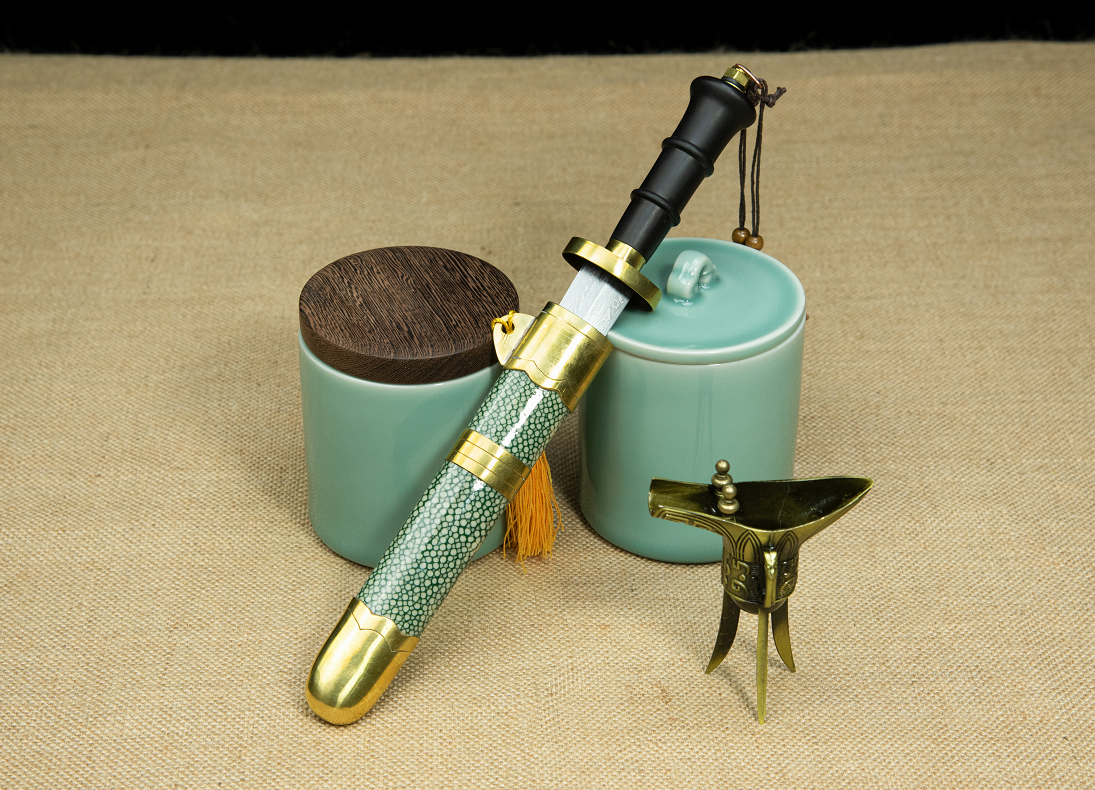 传承龙泉宝剑锻造技艺非物质文化遗产文化,龙泉宝剑厂的锻制技艺浓缩了古法智慧。从选料到淬火,从镂刻到磨砺,每道工序皆由匠人精心制作完成,使这把鱼肠剑不仅是冷兵器文化的载体,更是"烈火与匠心对话"的结晶。当指尖抚过千层钢的流水纹与鱼皮鞘的光滑质感,跨越两千五百年的勇绝之气,仍在金属与皮革的碰撞中铮鸣不息。