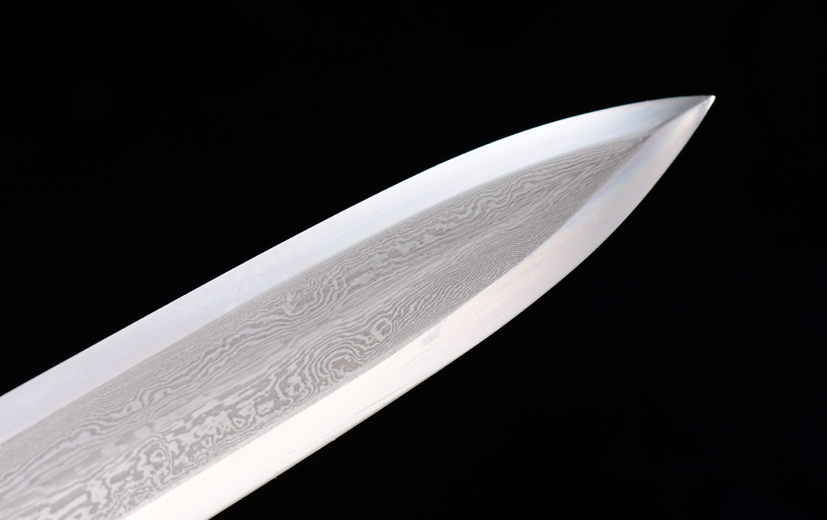 从戎汉剑延续传统百炼钢锻造工艺,剑身采用经典八面汉剑形制,线条流畅,刚毅挺拔。经过千锤百炼,剑身呈现出如行云流水般的美妙纹理,既彰显了铸剑师的高超技艺,又赋予了宝剑独有的生命力。每一寸剑身都凝聚着龙泉铸剑的匠心与传承,寒光锐利,锋芒含蓄,展现大汉雄风。